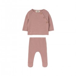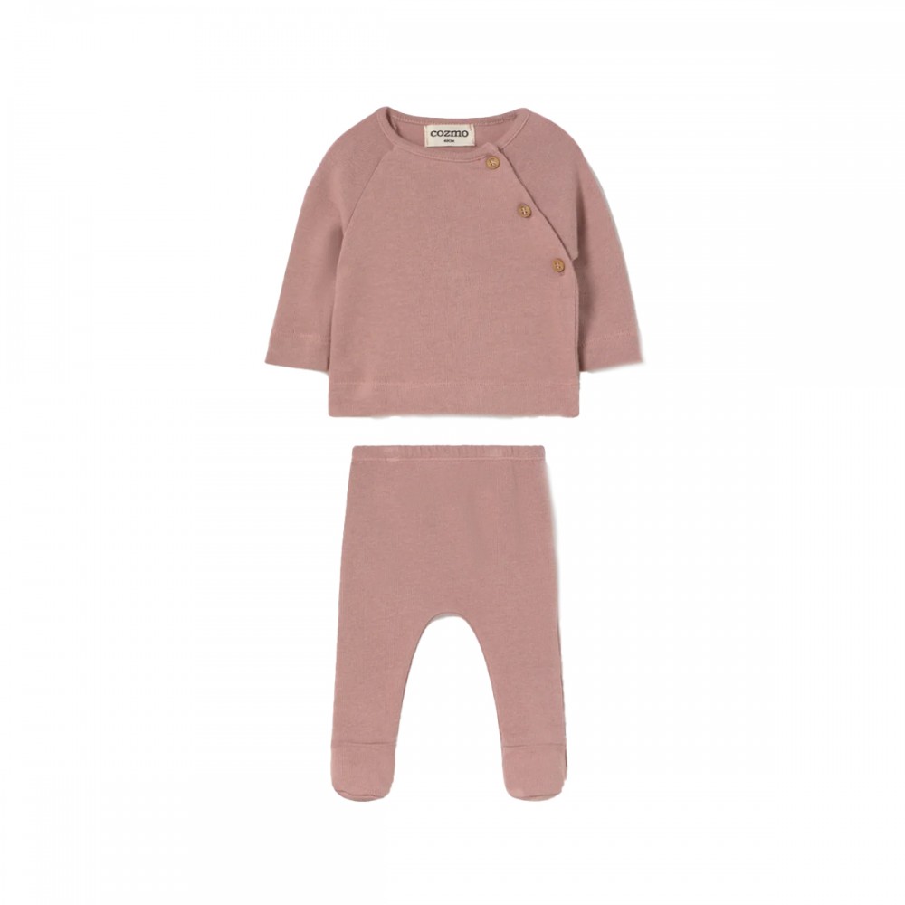 Ensemble deux pièces pour nouveau-né de la marque Cozmo, composé d'un cardigan cache-cœur et d'un pantalon à pieds assorti en maille ultra-douce. Les deux pièces sont brossées à l'intérieur comme à l'extérieur pour une chaleur et un confort exceptionnels, assurant le confort de bébé tout au long de la journée.