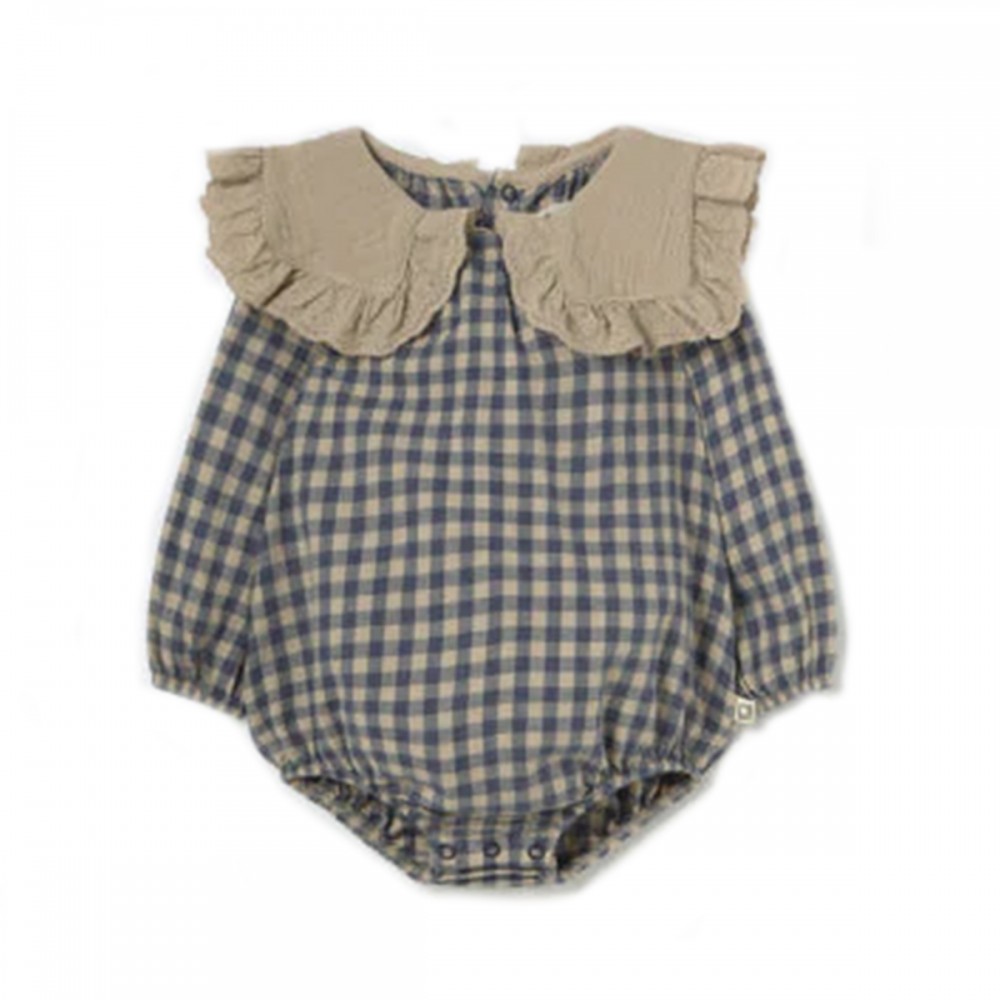 Barboteuse "Tavira" Gingham Ivoire et bleu