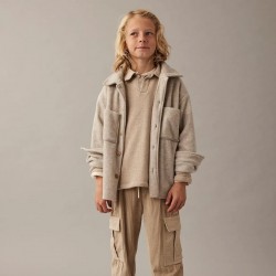 Veste-chemise confectionnée en bambou doux au subtil effet chiné. Elle présente un col classique, une fermeture boutonnée sur le devant et des poches plaquées ornées de surpiqûres sur la poitrine. Des poignets boutonnés et un empiècement dos complètent le modèle. Douce, respirante et agréable au toucher, elle fait partie de la collection de vêtements pour enfants en bambou de Cozmo.