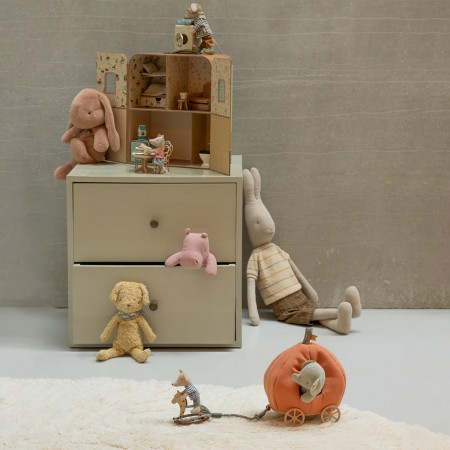 Que le conte de fées commence... Le carrosse de la marque Maileg est idéal pour les déplacements de la famille souris royale lorsqu'elle doit quitter son château. Les tissus peuvent varier.