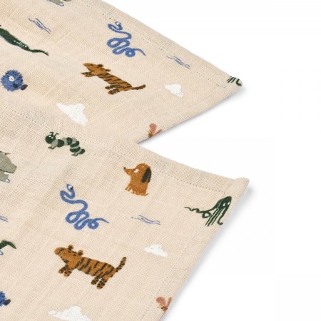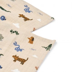 Le pack est composé de 2 langes avec des imprimés d'animaux du monde. Ils seront essentiels de l'arrivée de bébé jusqu'au quotidien, fabriqués en coton biologique, ils deviennent encore plus doux au fil des lavages, les couleurs proviennent de colorants naturels qui n'affecteront en aucun cas les peaux sensibles et fragiles des bébés.