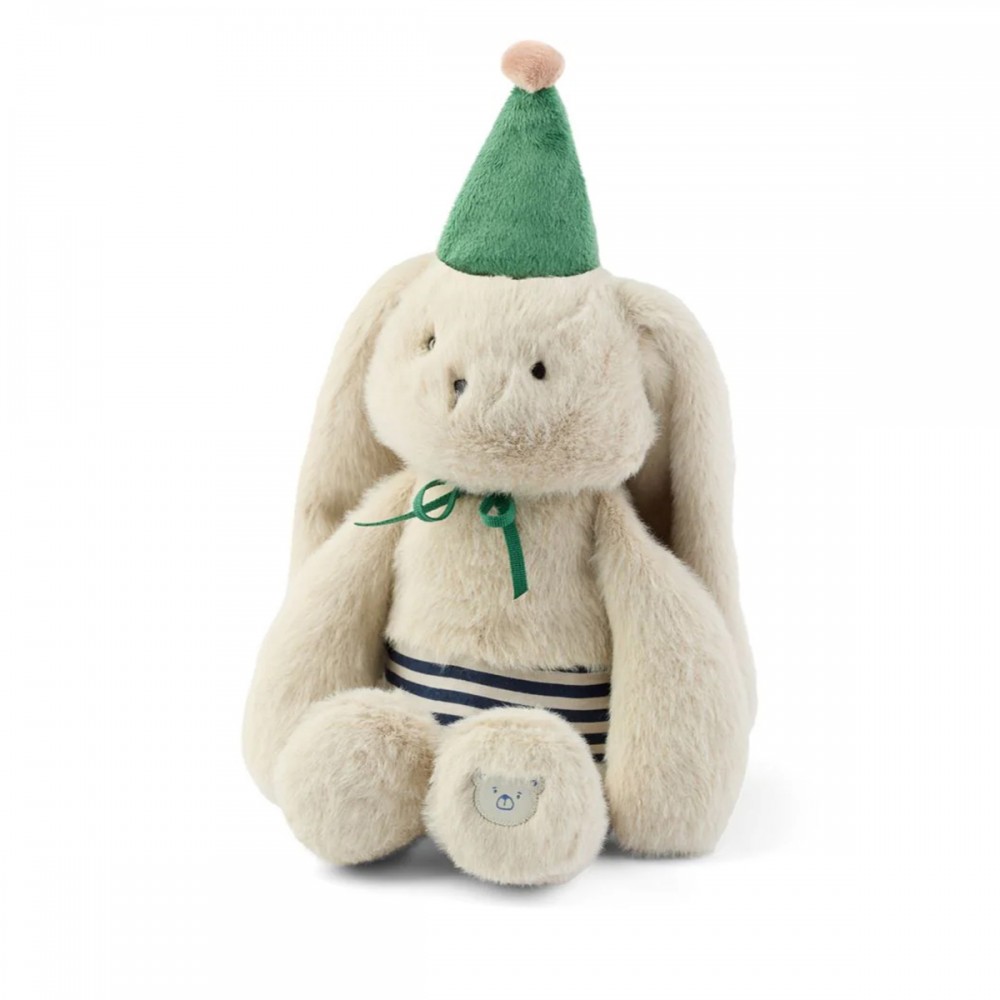 Avec son air espiègle et son joli chapeau de fête, Bertrand le lapin est prêt à partager les plus doux câlins ! Fabriquée en polyester recyclé ultra-doux certifié GRS, sa fourrure moelleuse allie tendresse et éco-responsabilité.