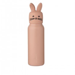 La gourde isotherme avec son bouchon en forme de tête de Chat imaginée par Liewood a une contenance de 350 ml et mesure 19,5 cm.