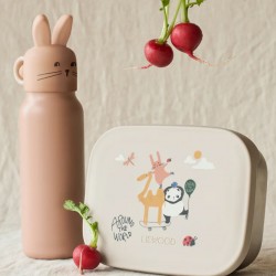 Vendue avec son bouchon sport en polypropylène sans BPA (Bisphénol A) avec une paille refermable et un goupillon. La gourde Liewood peut donc conserver 350 ml (un peu plus qu'une canette de soda) de boisson chaude (12h) ou froide (24h) grâce à sa fonction thermique. Le bouchon a une poignée afin qu'il puisse être facilement attaché à un sac ou au landau.