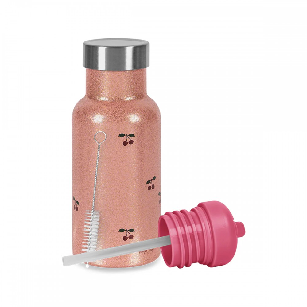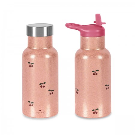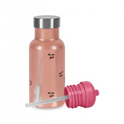 La gourde isotherme pailletée avec ses jolis imprimés de cerises permet d'emporter une boisson chaude ou froide lors de sorties ! Deux embouts sont inclus : un bouchon simple type thermos et un embout sport, idéale pour toutes les situations!
