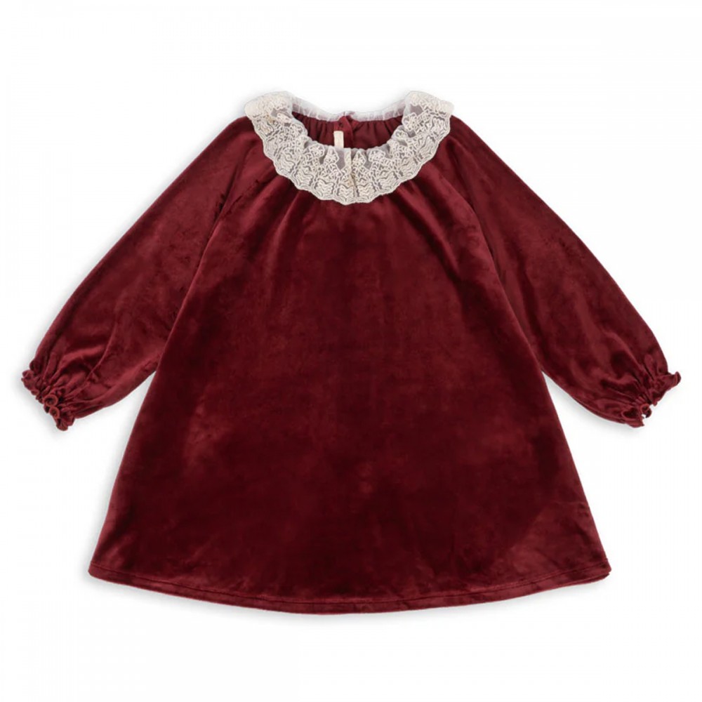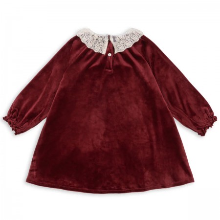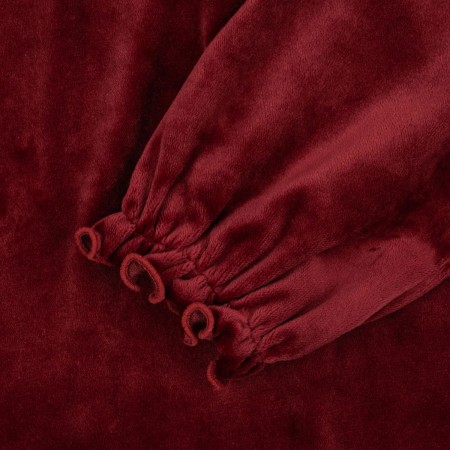 Conçue en velours de coton très doux, la robe a des extrémités de manches élastiques avec des poignets à volants.