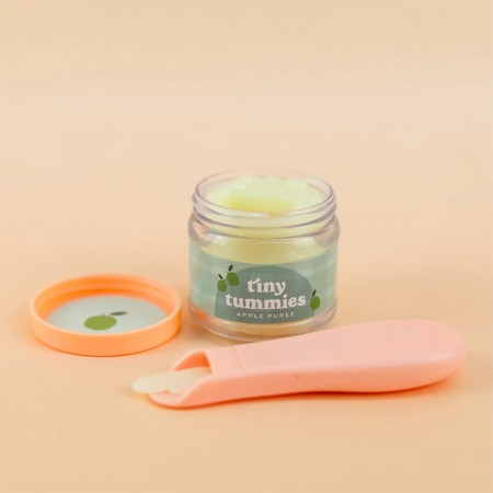 Plongez la cuillère dans le pot, et une compote saveur pomme apparaît comme par magie ! Ensuite, approchez la cuillère de la poupée : la purée disparaît pour recréer un repas réaliste et captivant.