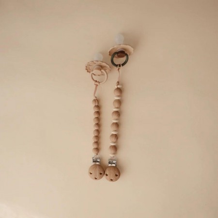 Attache tétine en perles de silicone "Hera" Imitation bois