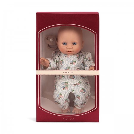 - Matières : Coton biologique (vêtements), polyester (rembourrage), polypropylène (tétine) et vinyle (poupée)