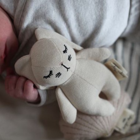 La jolie peluche de petite taille est facile à attraper pour les petites mains de bébé. Elle est fabriqué à base de coton biologique et produit un jolie son de clochette lorsqu'on la secoue. Un cadeau idéal et totalement sécuritaire pour les bébés.