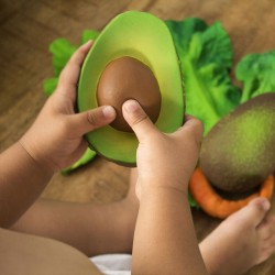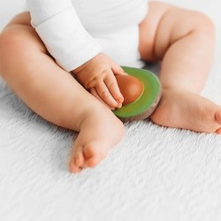 Arnold l'avocat en latex d'hévéa de la marque Oli et Carol en latex d'hévéa 100% naturel est un petit jouet pour bébé qui peut servir comme jouet de dentition, de bain ou comme objet décoratif. Un jouet écologique sans danger pour l'enfant.