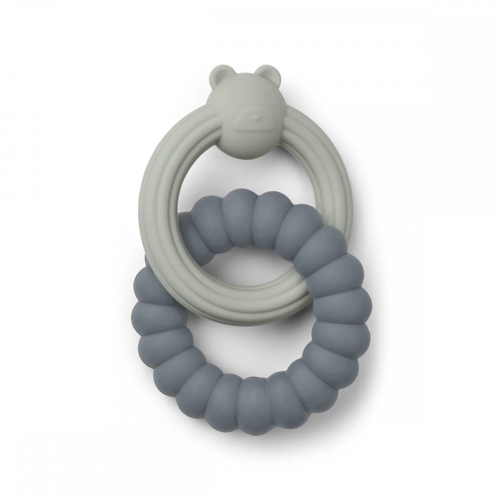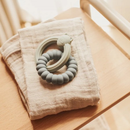 Ces anneaux en silicone souple de le marque Liewood stimulent la poussée des dents de bébé. Différentes textures pour une expérience sensorielle enrichissante.