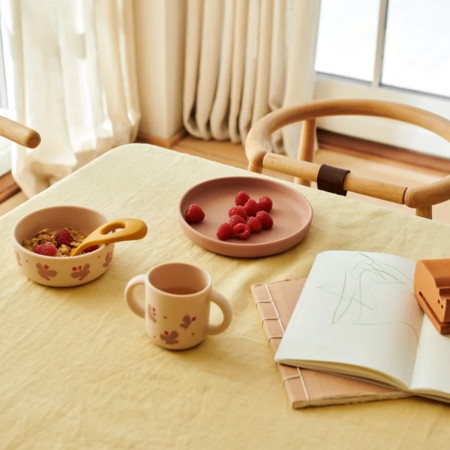 Le joli set de repas "Vivi" de la marque danoise Liewood pour les plus petits est conçu en 100% silicone, ses imprimés papillons feront craquer petits et grands.
