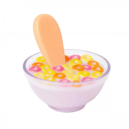 C'est l'heure du petit déjeuner! Au menu : bol de lait avec de délicieux céréales colorés. Le bol magique Tiny Loops est livré avec une cuillère spéciale dotée d'un mécanisme rétractable, créant l'illusion que la poupée mange réellement la nourriture.