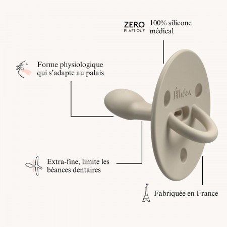 - Fabrication française : Conçue en collaboration avec des orthodontistes et fabriquée en France, la sucette répond aux normes de sécurité et de qualité les plus exigeantes.