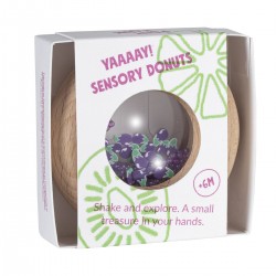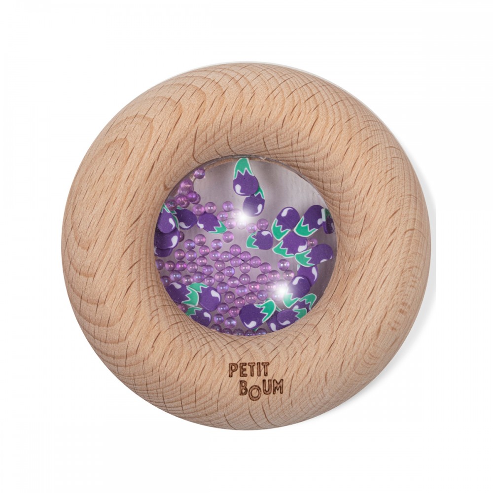 Éveillez les sens de votre bébé avec le hochet sensoriel Sensory Donut aubergines de Petit Boum.