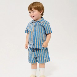 Chemise de la marque Bobo Choses à manches courtes dotée d'un col tailleur, d'emmanchures basses, d'une fermeture boutonnée sur le devant, d'une broderie, d'une coupe ample et de poches plaquées.
