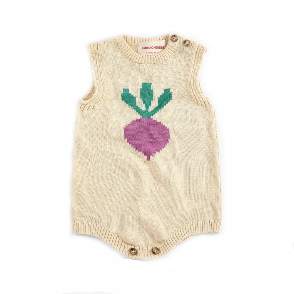 barboteuse en maille de la marque Bobo Choses avec un joli navet et comportant une fermeture boutonnée à l'épaule, un ourlet en bord-côte, une coupe décontractée et un col rond.