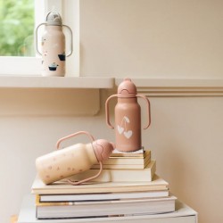 La nouvelle version innovante de la gourde isotherme Liewood "Falk" adaptée aux tout-petits, est dotée de deux poignées faciles à prendre en main.