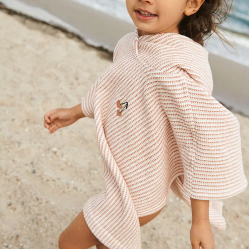 Le magnifique Poncho à rayures tuscany rose "Paco" en nid d'abeille imaginé par la marque danoise Liewood est parfait pour les journées plage, piscine ou tout simplement à la maison.
