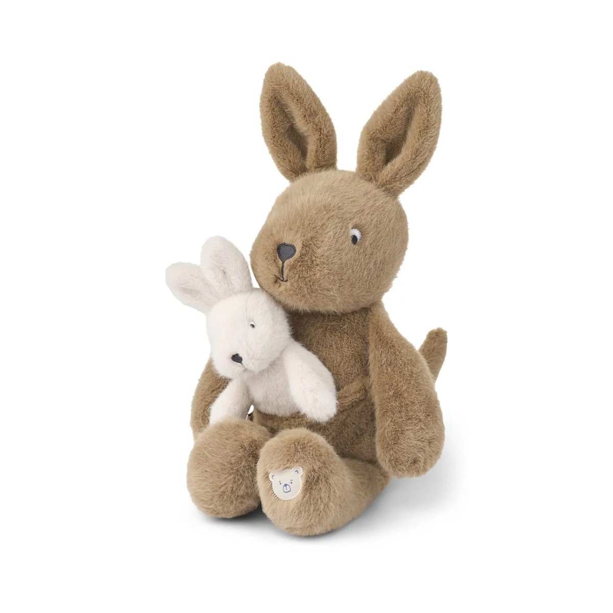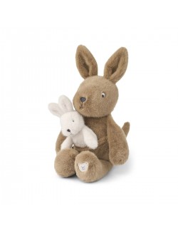 En forme de douce maman kangourou et de son bébé, fabriqué en polyester recyclé post-consommation certifié GRS ultra doux, ce compagnon câlin garde les tout-petits au chaud pendant leurs aventures du jour et apaisés au moment des histoires du coucher.