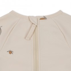 La combinaison anti-UV "Aster" de la marque danoise Konges Sløjd est conçue avec à une fermeture éclair sur l'arrière afin de pouvoir la mettre et l'enlever facilement.