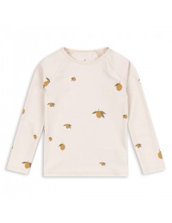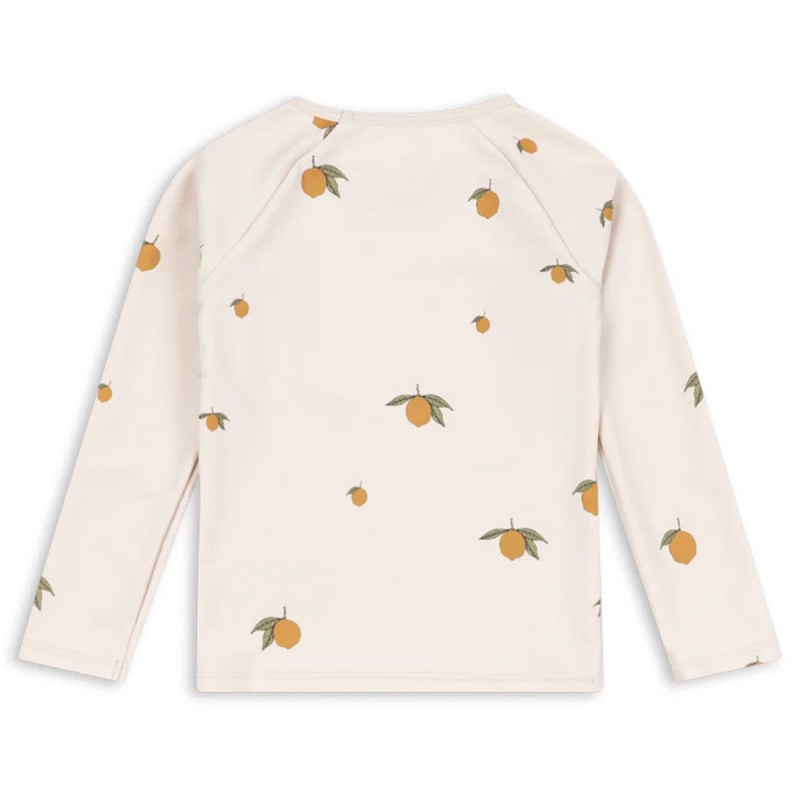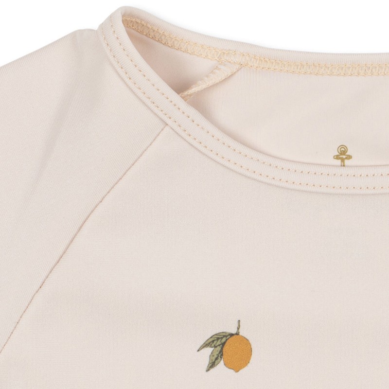 Le nouveau tee-shirt anti-UV "Aster" aux imprimés citrons de la marque danoise Konges Sløjd est conçu avec à une fermeture éclair sur l'arrière afin de pouvoir le mettre et l'enlever facilement.