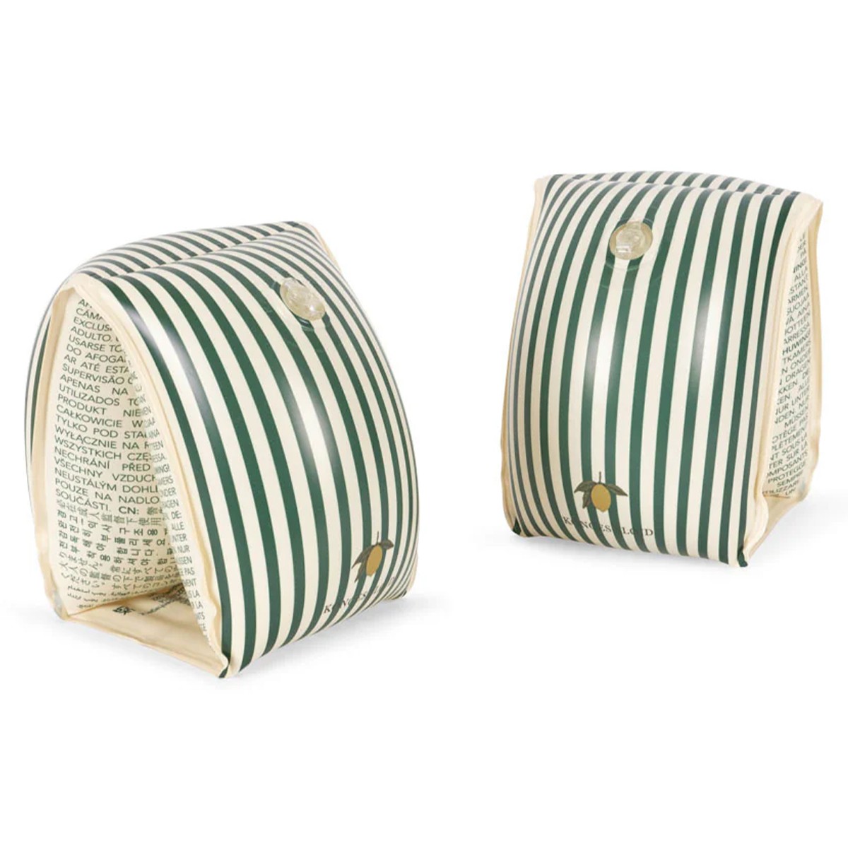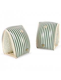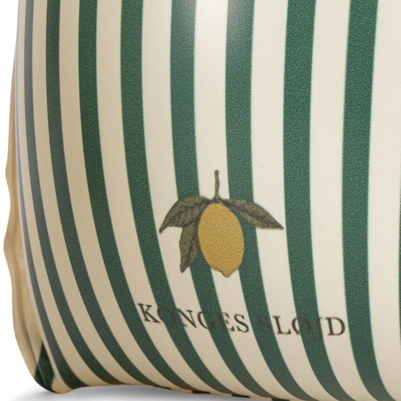 Cette paire de brassards Konges Slojd accompagnera votre enfant lors des baignades et sorties en mer ou à la piscine. Ils pourront l'aider à se sentir en sécurité lors de l'apprentissage. Les imprimés représentent des rayures écru et vert.