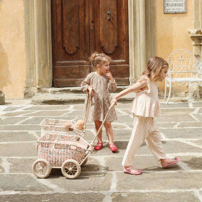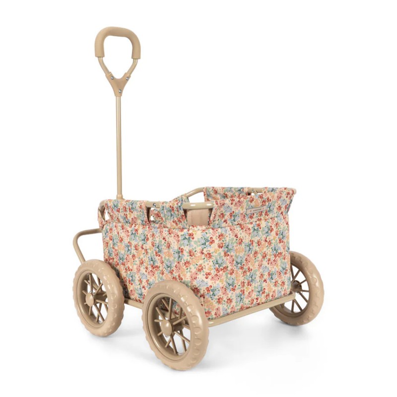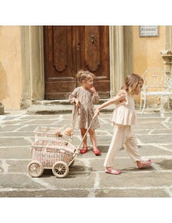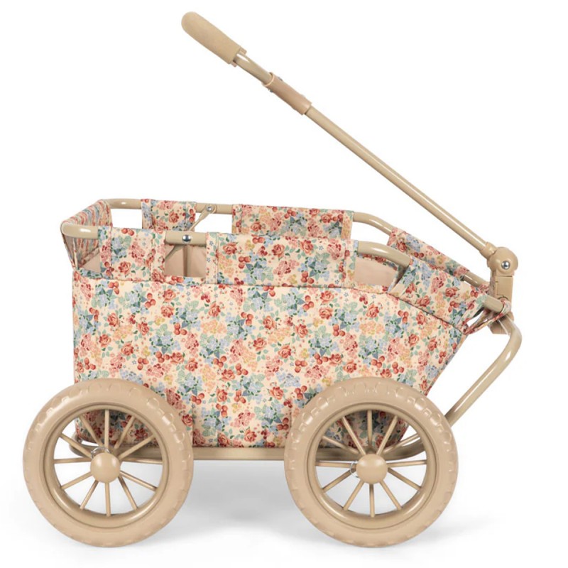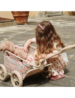 Voici le compagnon idéal pour emmener tous vos meilleurs amis en balade. la poussette-wagon pour enfants de la marque Konges Slojd est conçue avec un cadre en métal robuste et doublée de coton doux. Elle est équipée de roues fluides et d'une poignée parfaitement adaptée aux petites mains.