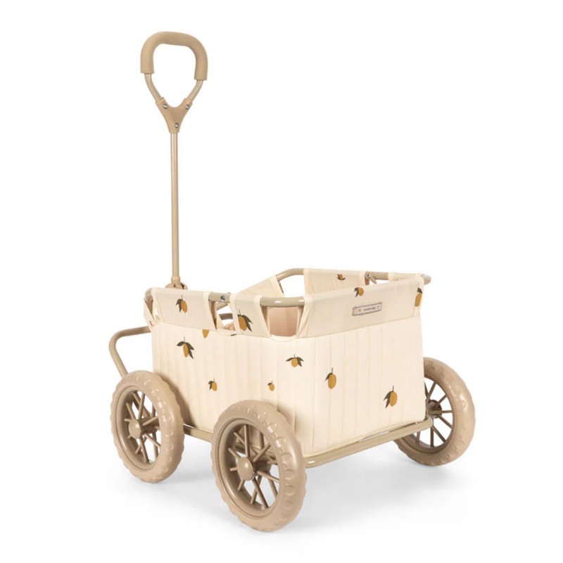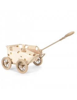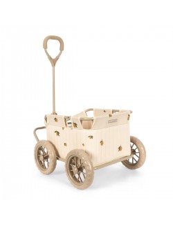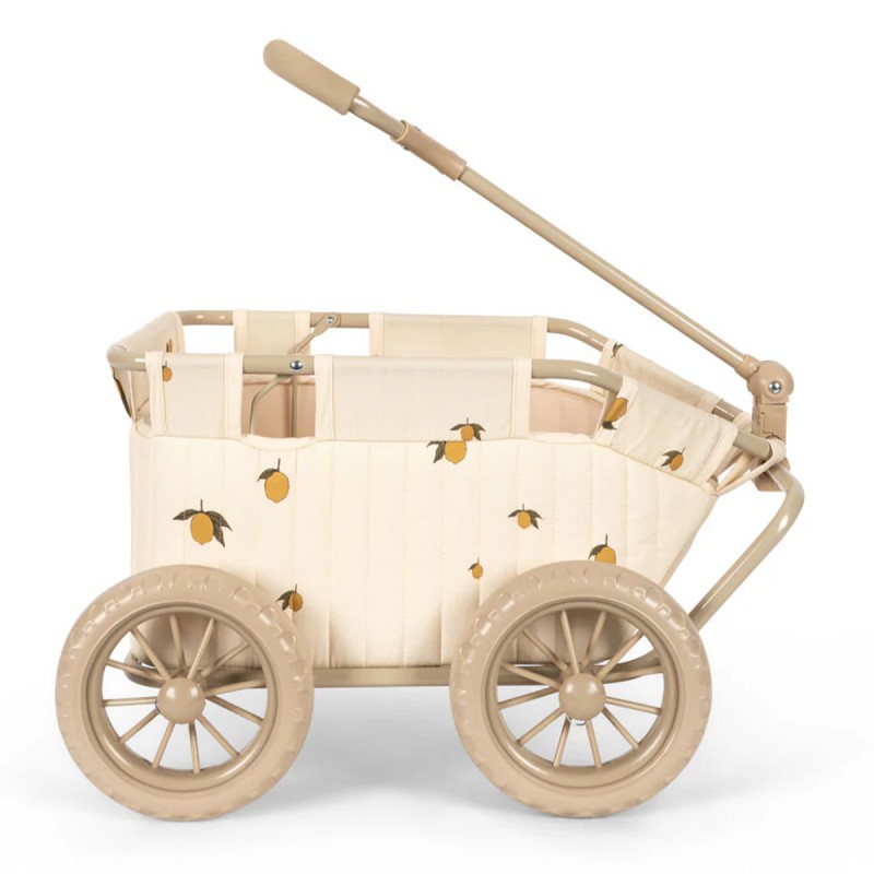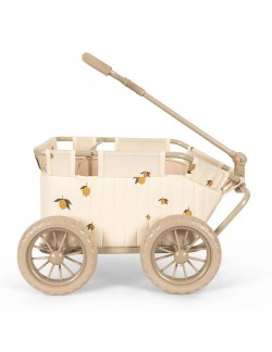 Voici le compagnon idéal pour emmener tous vos meilleurs amis en balade. la poussette-wagon pour enfants de la marque Konges Slojd est conçue avec un cadre en métal robuste et doublée de coton doux. Elle est équipée de roues fluides et d'une poignée parfaitement adaptée aux petites mains.