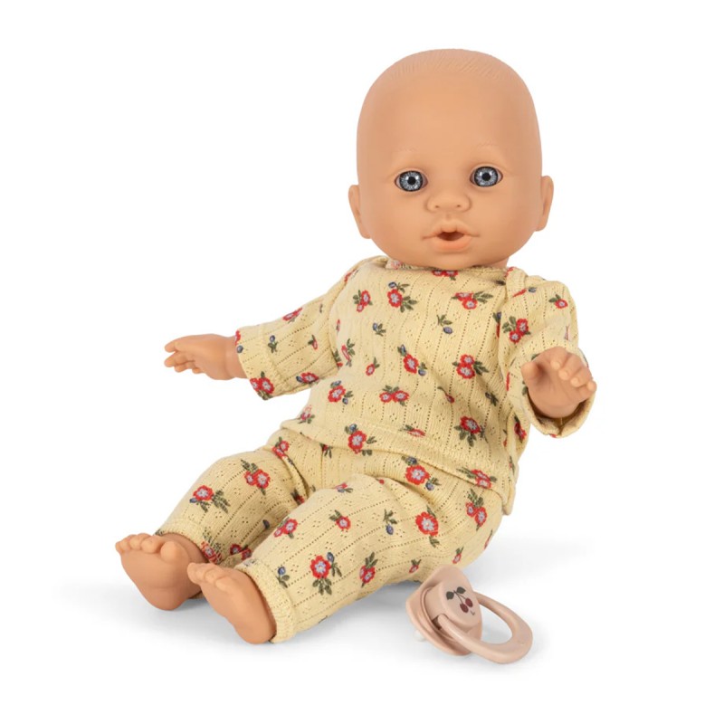 Vêtue d’un tee-shirt et d’un pantalon faciles à enfiler, cette poupée permettra à votre enfant de développer son imagination et son autonomie. Il pourra l'habiller et la déshabiller en fonction des moments de la journée sans aide. Une tétine pourra même l'apaiser en cas de besoin !
