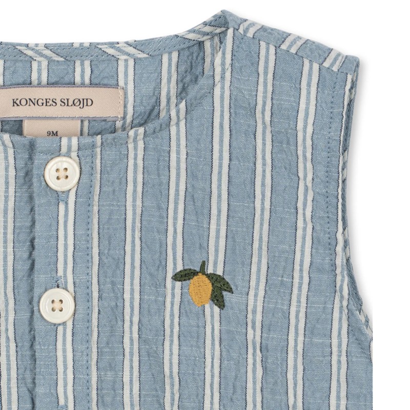 La combinaison « Elliot » de Konges Sløjd incarne la quintessence de l'élégance enfantine fusionnée avec une fonctionnalité inégalée. Minutieusement confectionné à partir de coton 100% biologique, ce vêtement une pièce est synonyme de tendresse et de confort, essentiels pour la peau sensible d'un enfant.