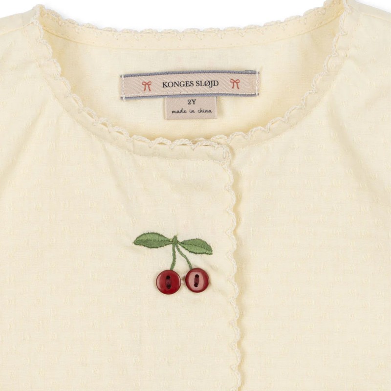 Fabriquée en coton biologique doux et respirant, ce qui signifie que Konges Slojd se soucie non seulement de l'esthétique, mais aussi du confort et de la sécurité de la peau délicate de l'enfant.