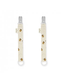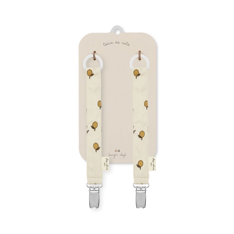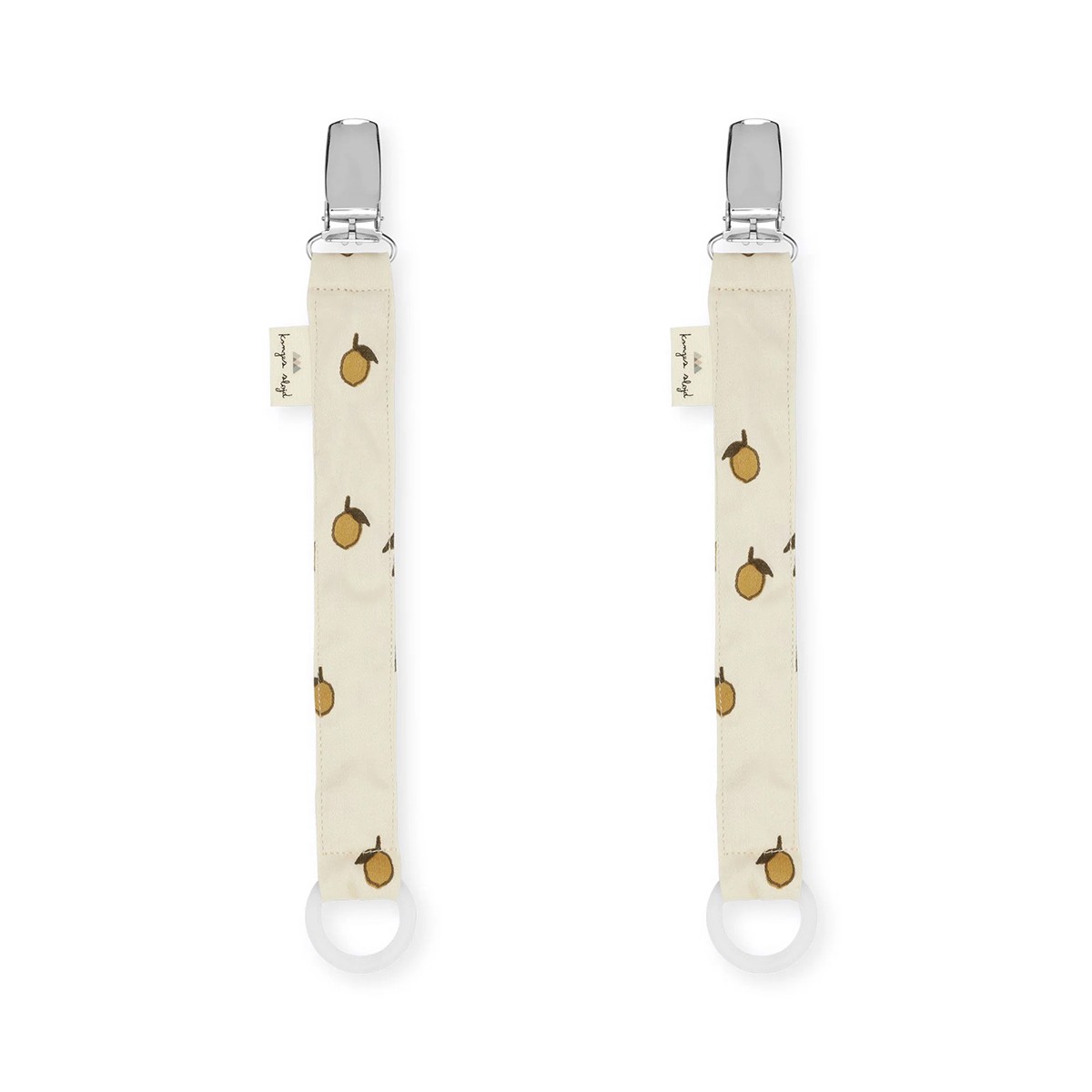 Ce lot de 2 attaches tétines en coton biologique de la marque danoise Konges Slojd vous fera craquer avec son imprimé citron.