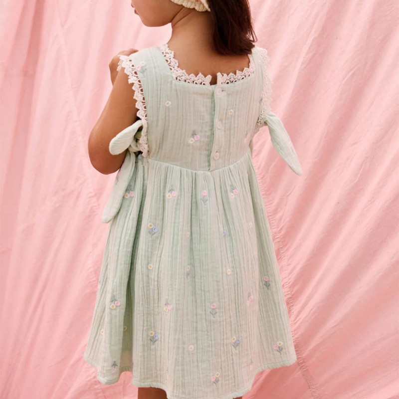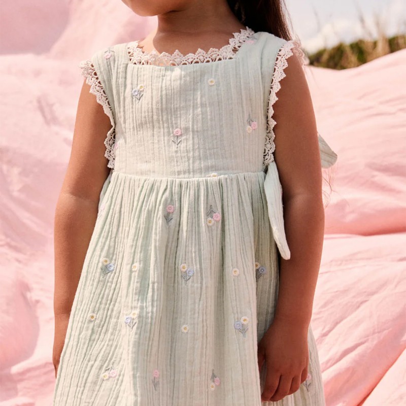 Pépite de cette nouvelle collection Louise Misha, la robe "Aloisa" en dougle gaze de coton biologique est adorable dans cette douce couleur.