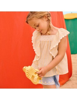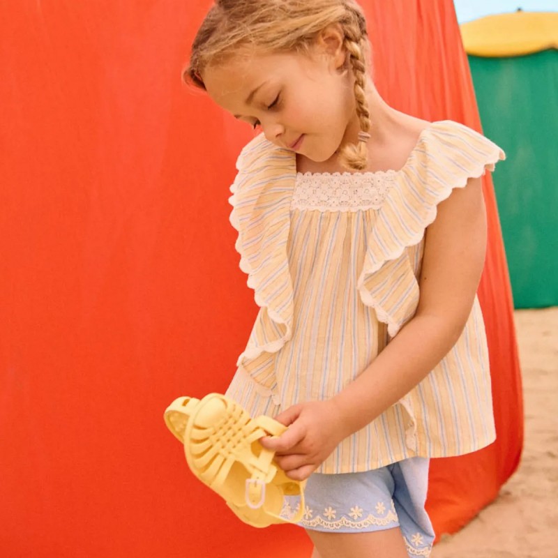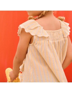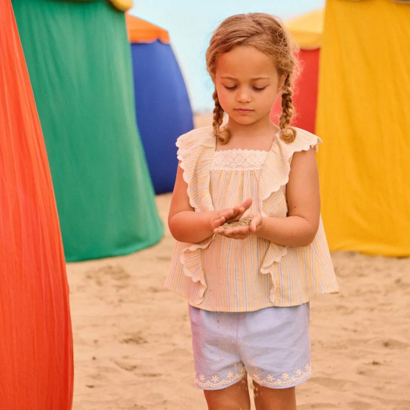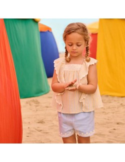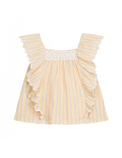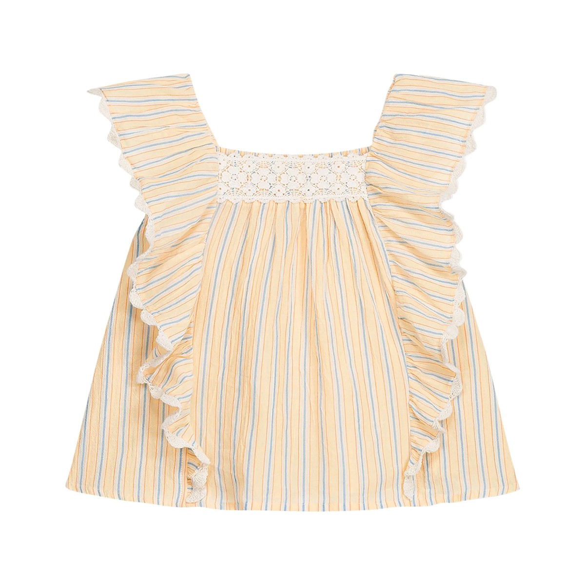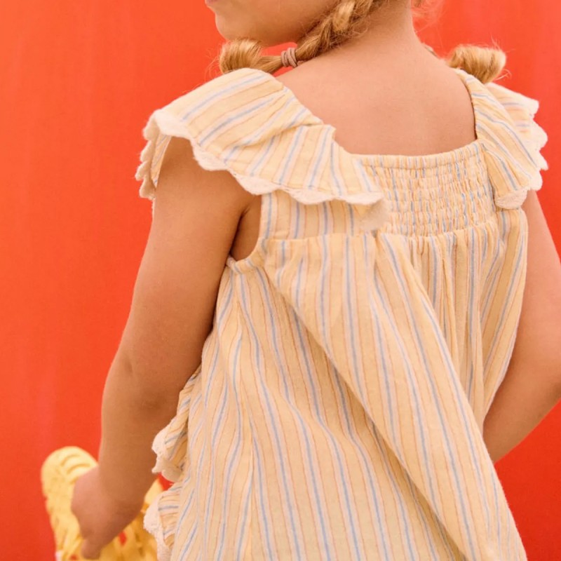 La blouse à volants fille Gia Louise Misha séduit par son style bohème et raffiné. Son tissu rayé en coton tissé teint apporte douceur et légèreté.