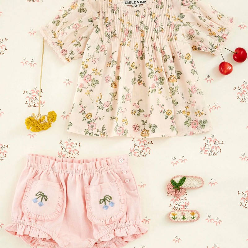 Bloomer "Cerises brodées" Rose Pâle