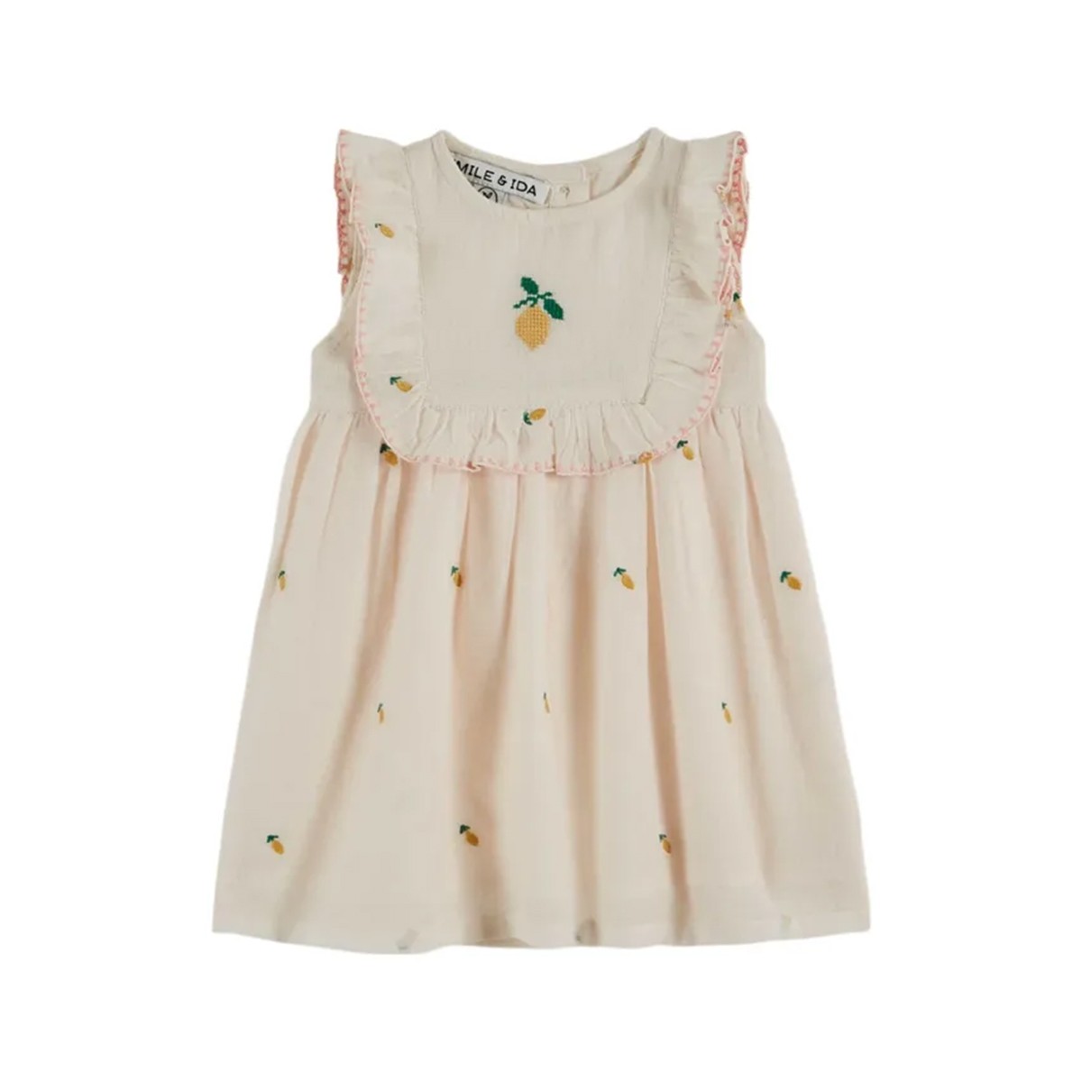 Comment ne pas craquer pour cette robe brodée avec de jolis petits citrons de la marque française Emile & Ida.