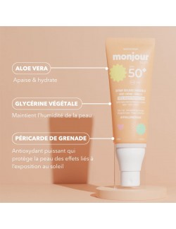 Le Spray Solaire SPF50+ a été conçu par la marque Monjour pour protéger efficacement le visage et le corps de bébé et de toute la famille des coups de soleil. Grâce à ses quatre filtres organiques nouvelle génération, il luttera efficacement contre les rayons UVA et les UVB.