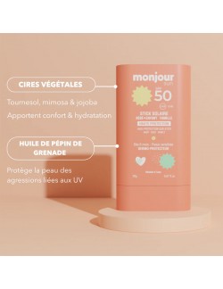 Le Stick Solaire SPF50 a été conçu par la marque Monjour pour protéger efficacement le visage de bébé et de toute la famille des coups de soleil. Grâce à ses trois filtres organiques nouvelle génération, il luttera contre les rayons UVA et les UVB efficacement.