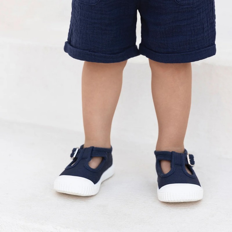 Ces chaussures en toile pour enfants dans une teinte bleu marine, sont à la fois élégantes, intemporelles et si pratiques à porter. Ultras souples et légères, elles sont conçues avec des matériaux de qualité pour le bon développement du pied et l'apprentissage de la marche. Idéales pour la garderie, les vacances et toutes les occasions.