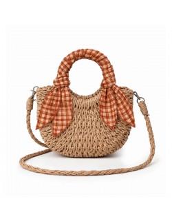 Mini sac en paille "Plaid Miel"